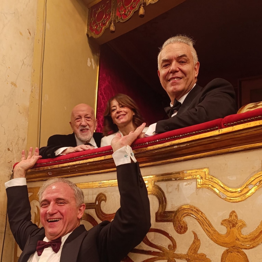 È la città di Parma, con i suoi retaggi storici, le sue bellezze, i suoi Farnese così ben ambientati da dimenticare quasi il natìo viterbese, la sua Maria Luigia, il suo Giuseppe Verdi, ad aver creato questa congiunzione tra un maestro della regia, PL Pizzi, e il suo compagno d’arte e di sentimenti, Massimo Gasparon. Si sono incontrati circa un quarto di secolo fa proprio nel parmense, per la progettazione del Museo Nazionale G. Verdi, creatura di Mariano Volani suo presidente che ci ha lasciato, innamorato di Verdi come il fratello Arnaldo lo è di Mozart, che mi volle accanto come suo vice per alcuni anni. Da sociologo riflettevo, pensando a Mariano imprenditore, visionario, trentino (come sono anch’io, in extremis della Val di Sole), come sia proprio del DNA degli imprenditori avvicinare risorse in vista del loro valore reciproco, sia in un’ottica di farne business, sia nel sentire di semplice opportunità. Ora eccoli, Pizzi e Gasparon, nel palco degli ospiti di riguardo del Regio di Parma, che mi stringono la mano. Prima di raggiungerli, non mi son fatto mancare (da Otello), un'eccellente degustazione di formaggi internazionali, salumi di ottima qualità e una selezione per razza bovina storica (bianca Modena, rossa Reggio, bruna Parma e frisona ovunque) di grana di varie stagionature, accompagnati da un’ottima bottiglia di Fortana, il vino che beveva Verdi insieme all’immancabile (anche per me...) spalla cotta.